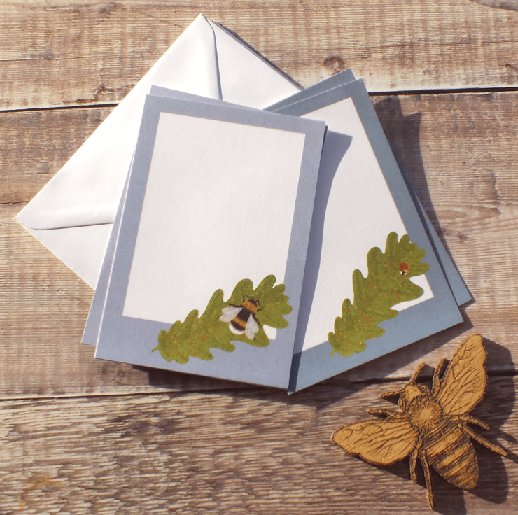 These A6 size mini writing paper sets contain 6 x luxuriously thick 100% recycled paper sheets that have been printed in England with my illustrated designs. They are accompanied by 6 x C6 size envelopes.