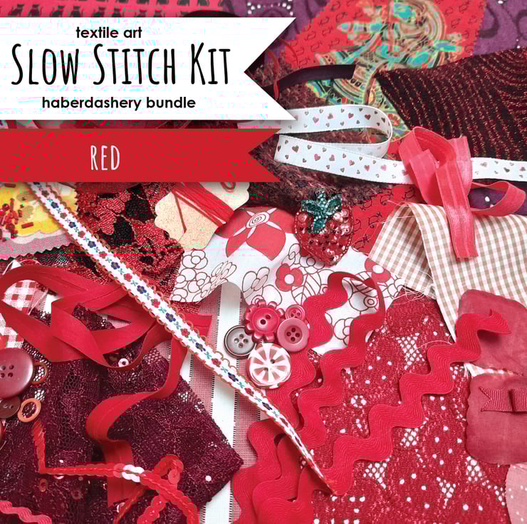 Slow stitching kit - red theme. Embrace the art of mindful stitching