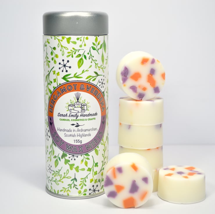 All of our wax melts are lovingly handmade in the Scottish Highlands. We use natural soy wax, the addition of carefully blended fragrances & a little decoration to create beautifully fragrant wax melts.