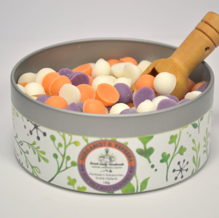 All of our wax melts are lovingly handmade in the Scottish Highlands. We use natural soy wax, the addition of carefully blended fragrances & a little pop of colour to create beautifully fragrant wax melts.
