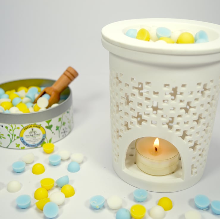 Place a scoop full of wax melt beads into the well of your oil burner/wax warmer. Let them melt and enjoy the fragrance released. Be careful not to overfill!