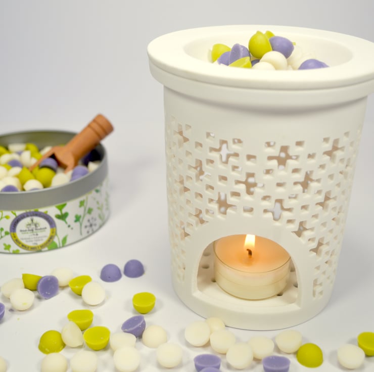 Place a scoop full of wax melt beads into the well of your oil burner/wax warmer. Let them melt and enjoy the fragrance released. Be careful not to overfill!