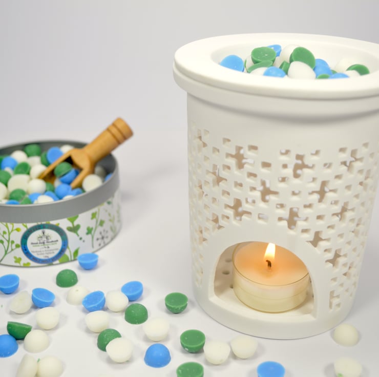 All of our wax melts are lovingly handmade in the Scottish Highlands. We use natural soy wax, the addition of carefully blended fragrances & a little decoration to create beautifully fragrant wax melts.