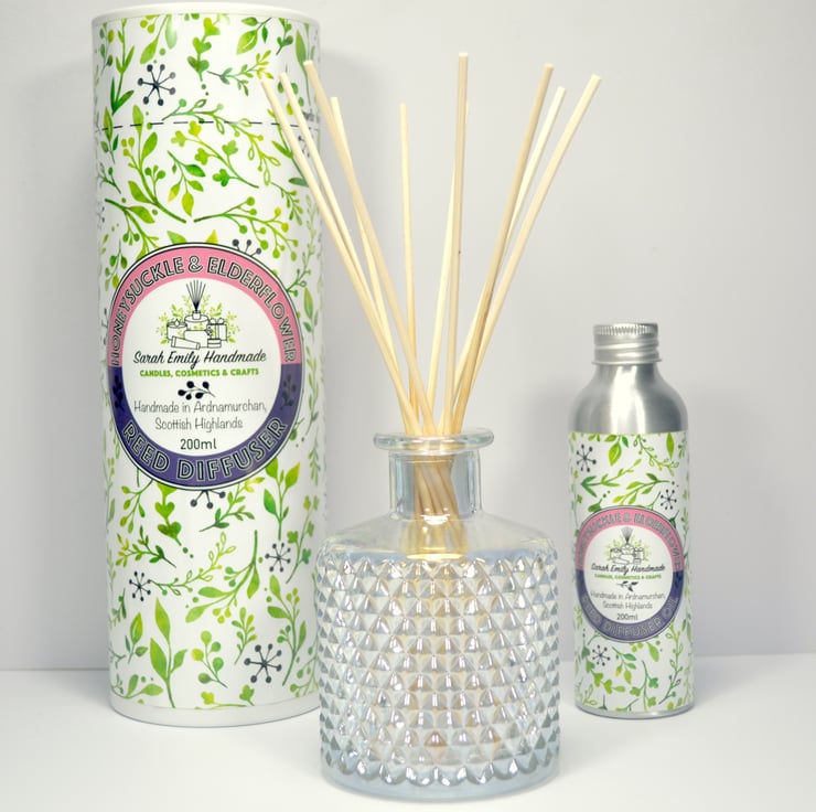 Enjoy a bouquet of refreshing and fragrant scents with our Honeysuckle & Elderflower Reed Diffuser!