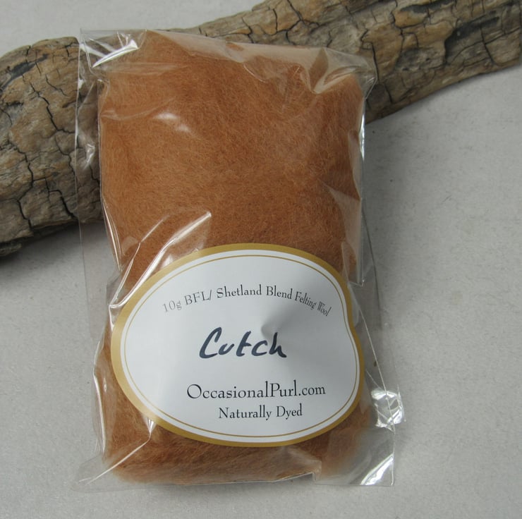 10g Naturally Dyed Cutch Brown BFL Shetland Felting Wool