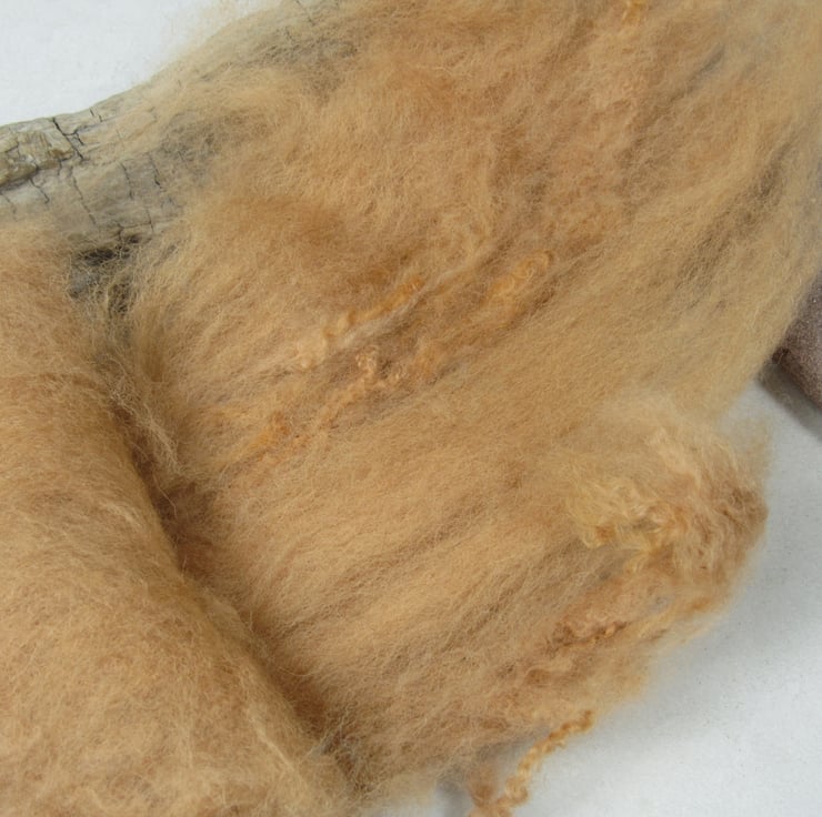 10g of blended Blue-Faced Leicester (for texture and crimp) with Shetland (for smoothness) wool naturally dyed and ready for felting, spinning or weaving.