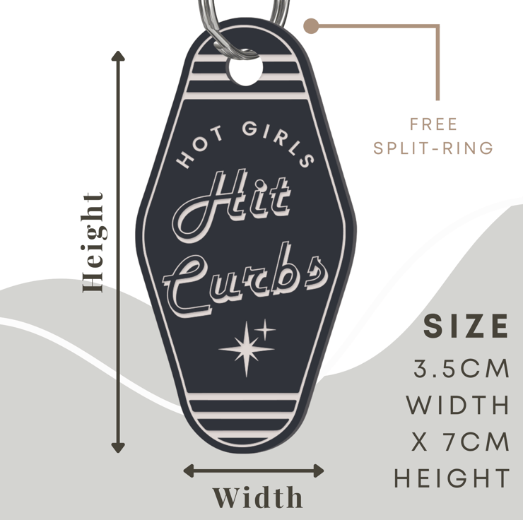 Looking for a gift that's as playful as it is cool? Our 'Hot Girls Hit Curbs' Acrylic Keyring is the perfect choice! This cheeky and retro-inspired accessory adds a touch of humour and personality to any keychain or bag. Ideal for your loved ones who are not the best drivers.