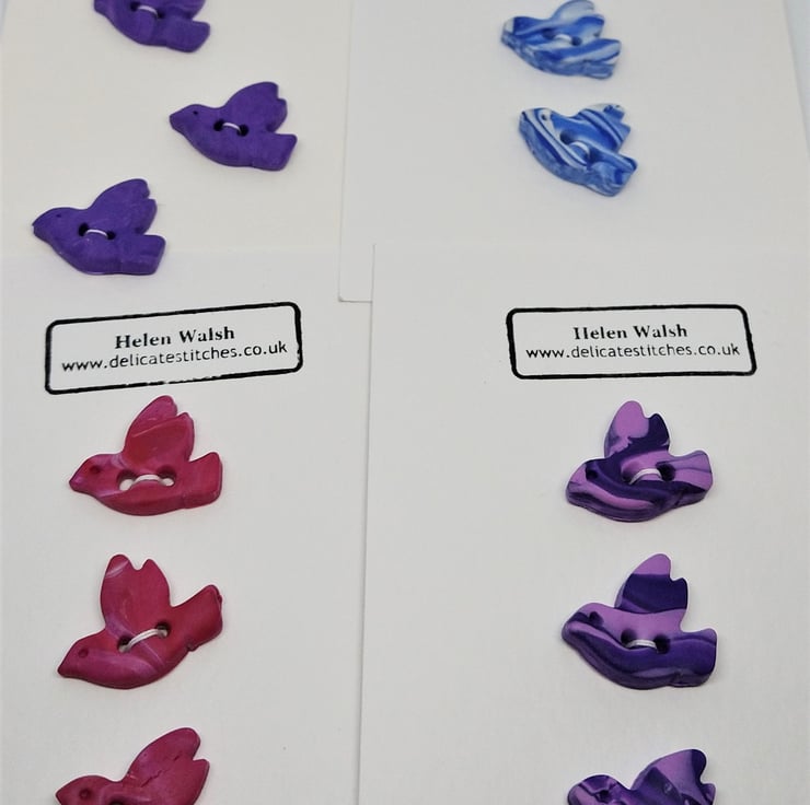 Made from polymer clay these beautiful bird buttons really are one of a kind. I mix all my colours in tiny batches so I only ever make a very limited number of buttons in each colour way.