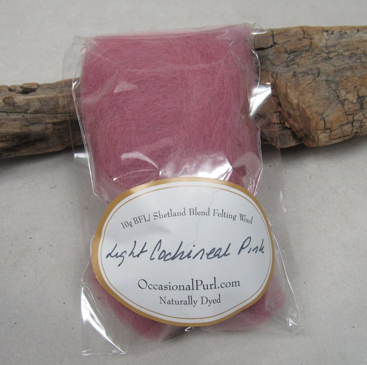 The fleece was cleaned, washed and carded here in North Wales before being kettle dyed with cochineal to a pretty soft pink