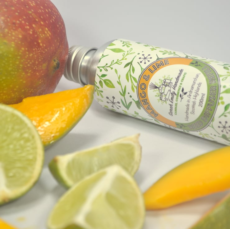 Escape to the tropics with our Mango & Lime Diffuser Refill for a zesty-fresh aroma that’ll make your home feel divine!