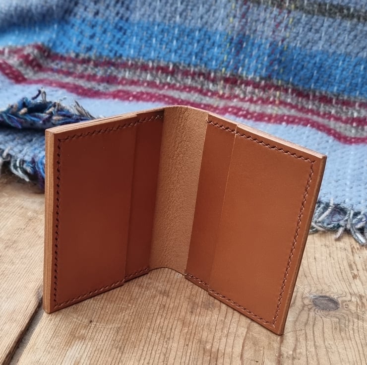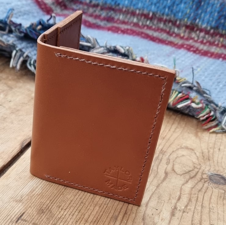 A slimline folded card wallet with room for 4-8 cards. Perfect for touser pockets or to avoid unsightly bulges in your best jacket pocket.