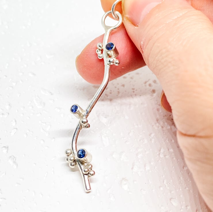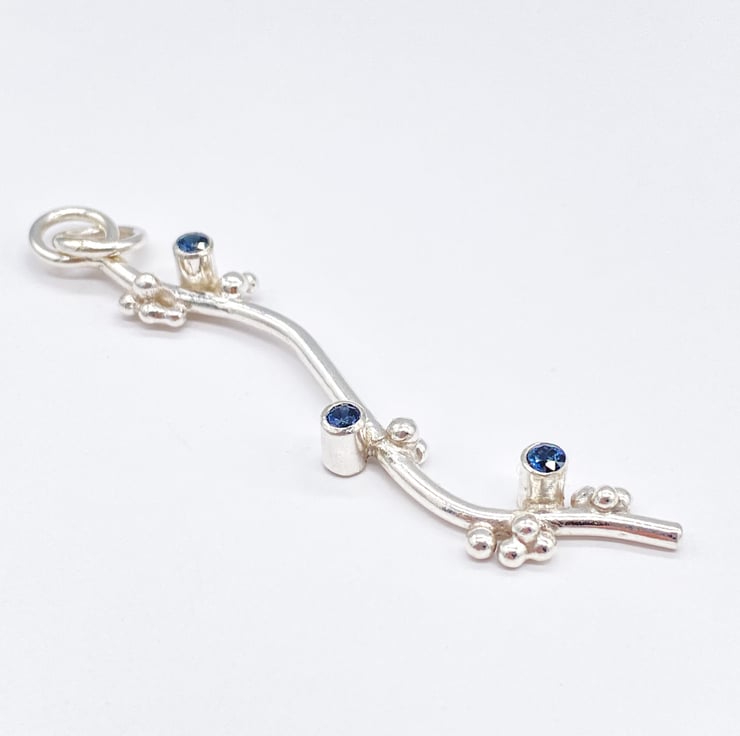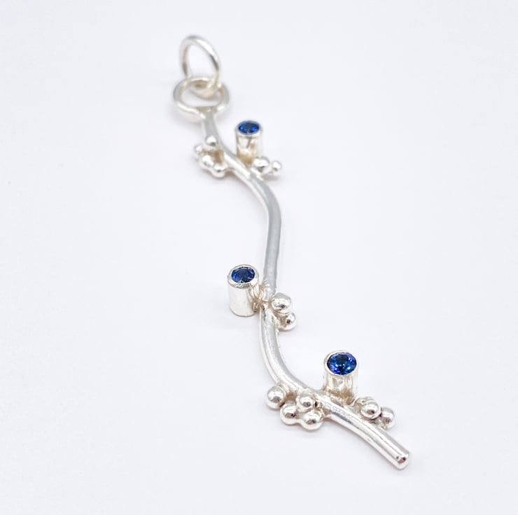Triple Australian Sapphire Sterling Silver vine pendant. Handmade using traditional metal smithing techniques.