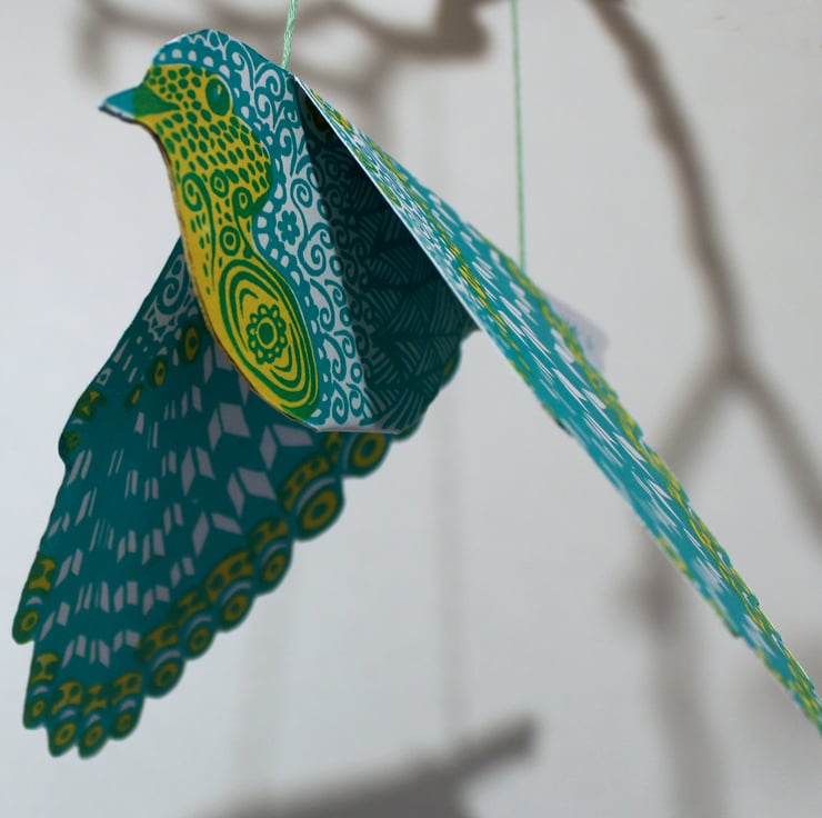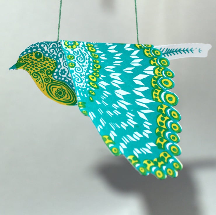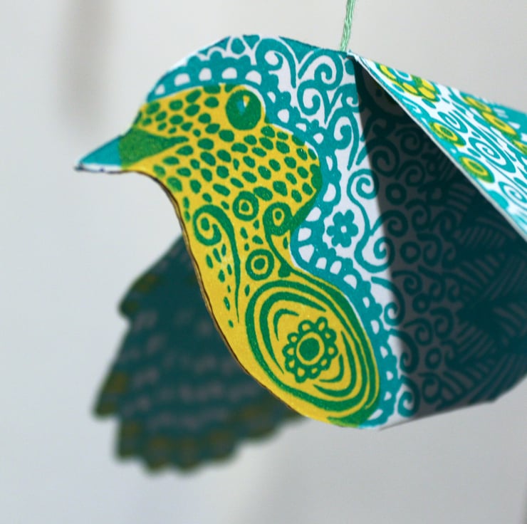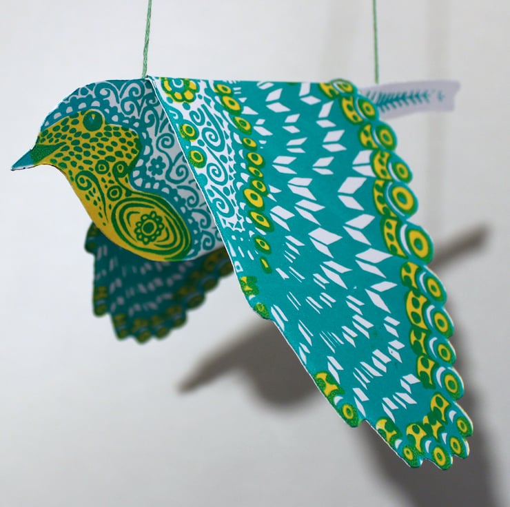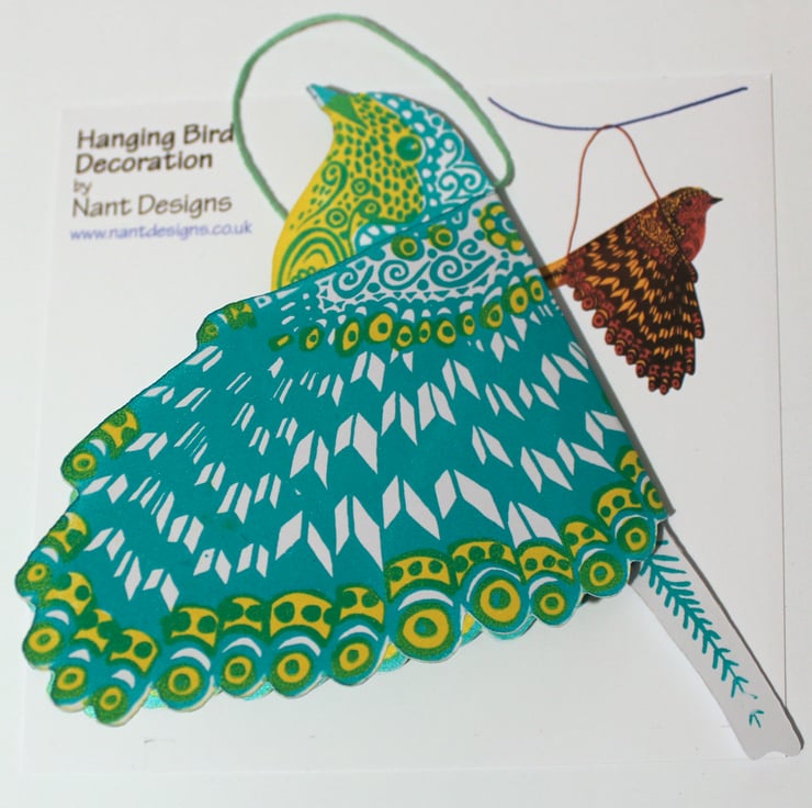 This bird has been hand printed on both sides in two colours. It is an original design, silkscreen printed by hand in my studio.