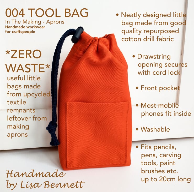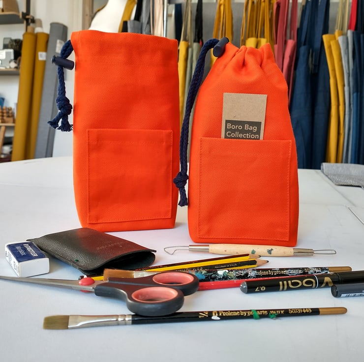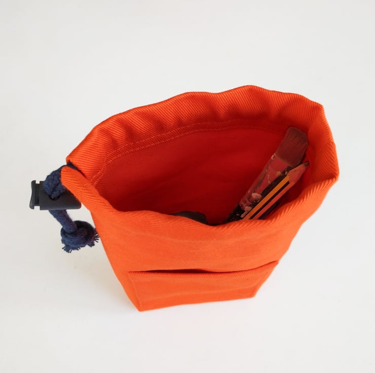 Orange Drawstring Pouch Bag with Pocket, for Phone, Artists & Makers Tools