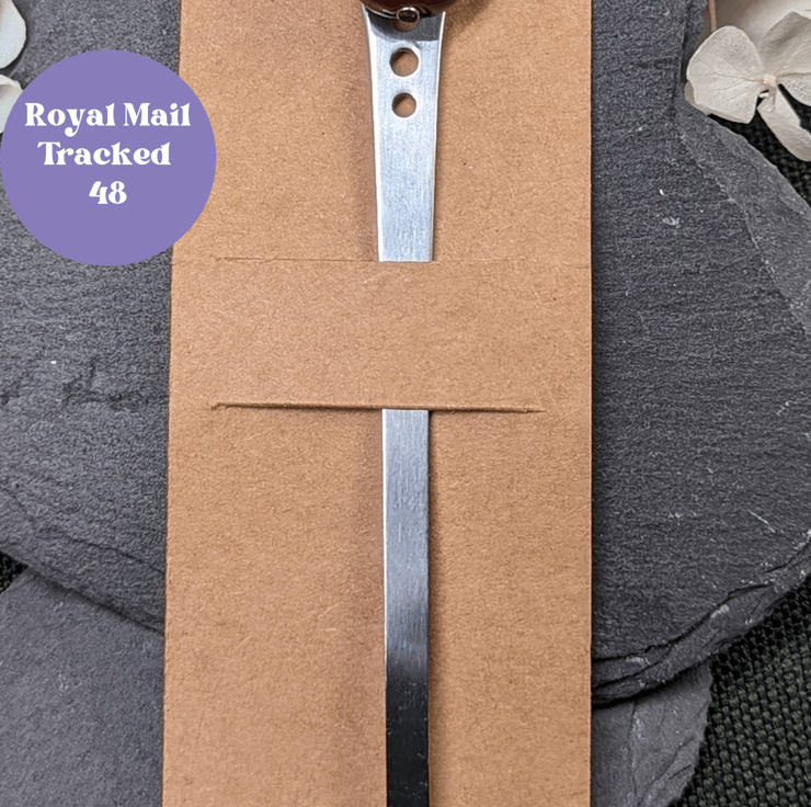 COE 104 glass has been used to create the glass bead and the tea spoon is stainless steel.