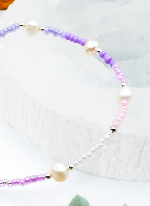 This bracelet is one of a kind! It's perfect for lovers of pearls, purple, and stacking jewellery!