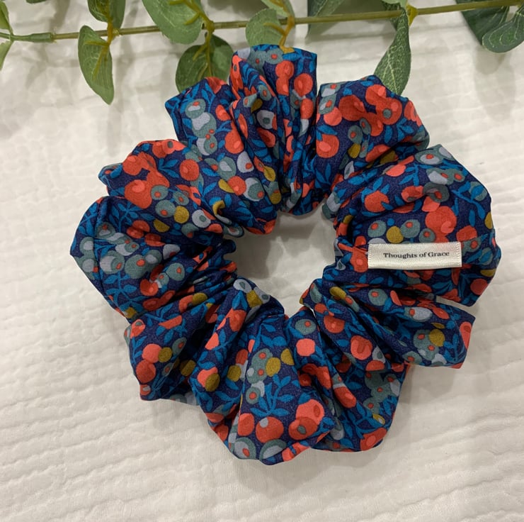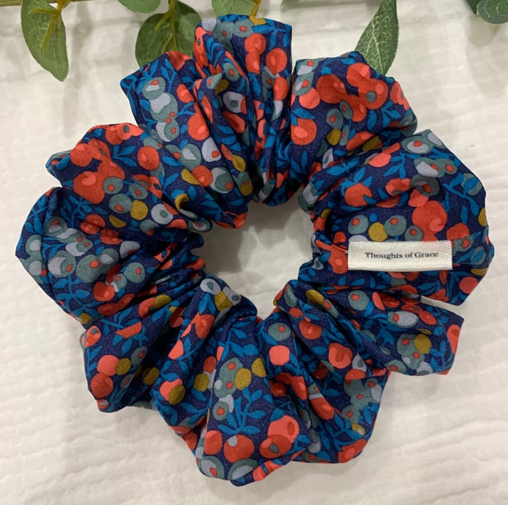 This Scrunchie is perfect for casual, work or party wear. Liberty fabrics are beautiful and the scrunchie colours are show stopping!