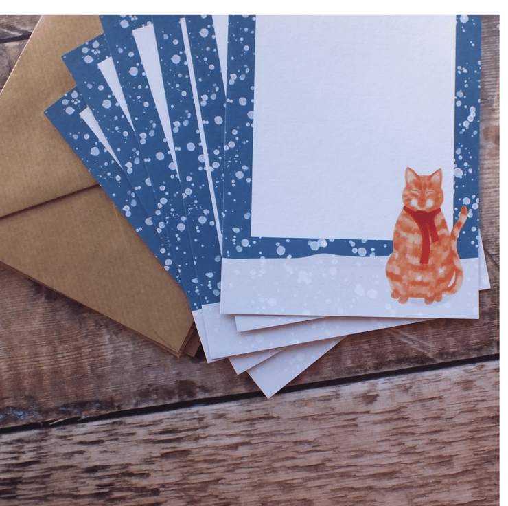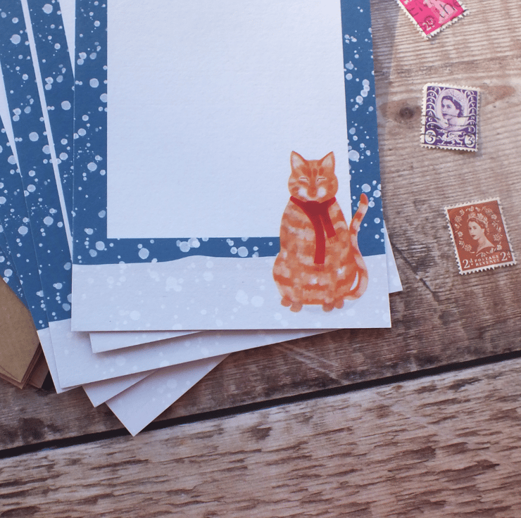 These little writing paper sets make very special letters or perfect gifts/ stocking fillers for letter writers. They are illustrated with my original designs and the paper feels lovely to both write on and to receive. You could also add little extras like stickers, stamps, paper confetti or other treats slim enough to fit in the envelope with the letter to make opening the letter extra special.