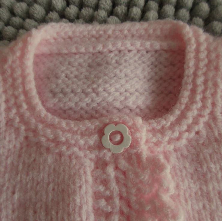 Fastening with 1 Pink Button with raised white flower (See picture)