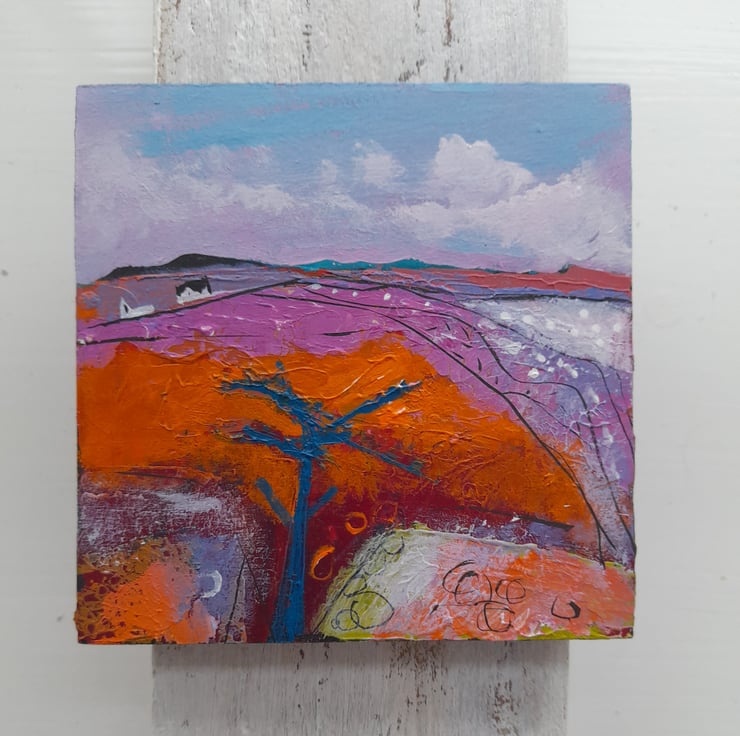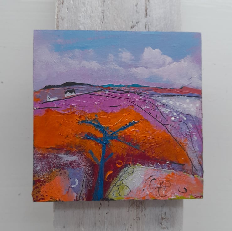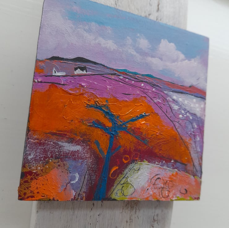 This 10 x 10 cm painting is varnished signed on the back and has a hook ready to hang. Great to brighten up a small corner or to give as a gift.