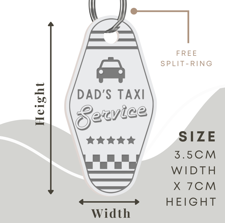 Celebrate the unsung hero of the family with our 'Dad's Taxi Service' Motel Style Acrylic Keyring. This quirky keychain adds a touch of humour to Dad's daily drive, making it the perfect light-hearted gift for the ultimate family chauffeur.
