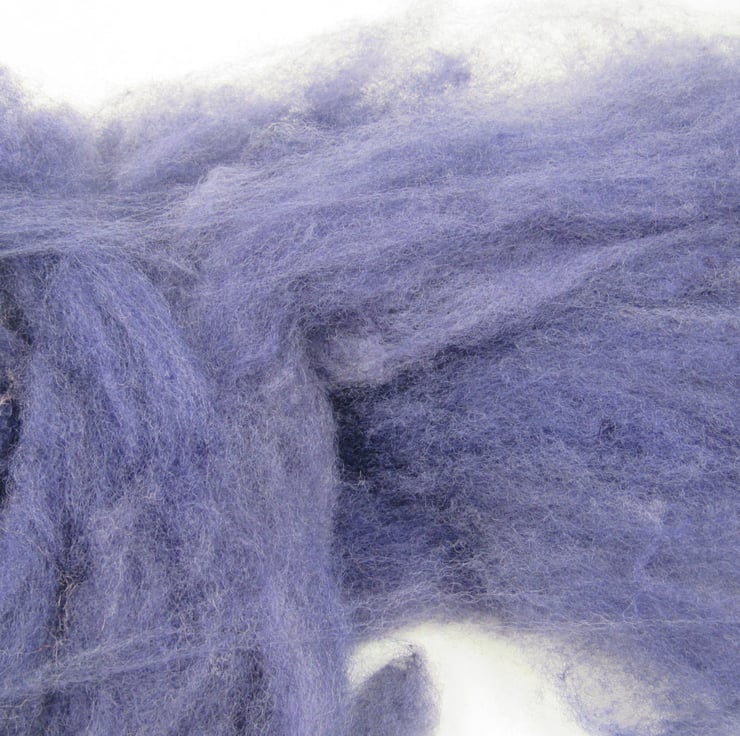 The fleece was cleaned, washed and carded here in North Wales before being kettle dyed with logwood to give a rich dark purple