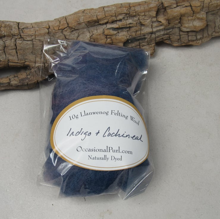 10g Naturally Dyed Indigo Cochineal Blend Llanwenog Felting Wool