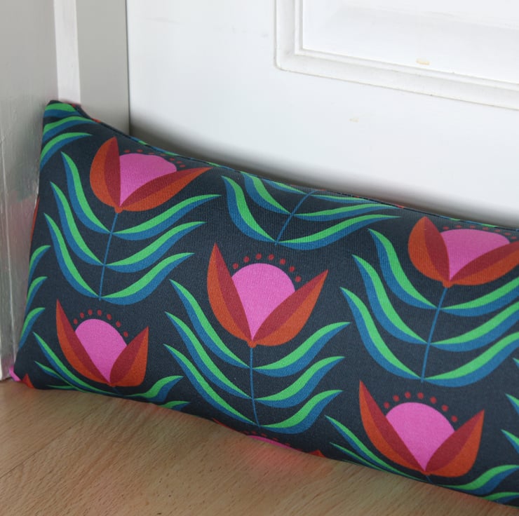 A colourful draught excluder in my 70s Bloom fabric in a gorgeous retro colours.