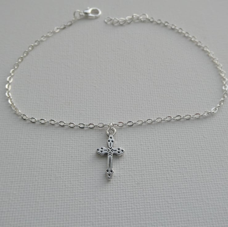 Silver cross ankle bracelet, Religious charm anklet