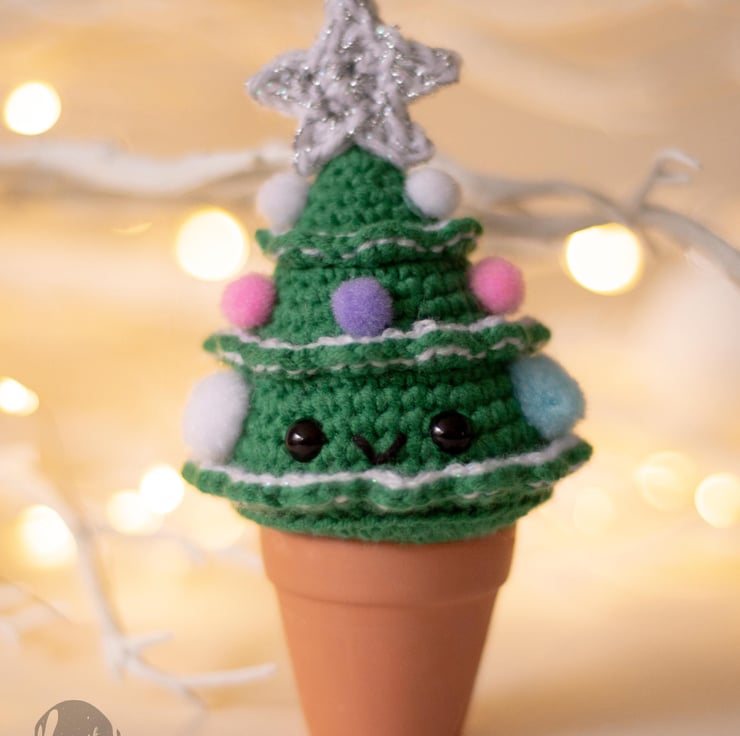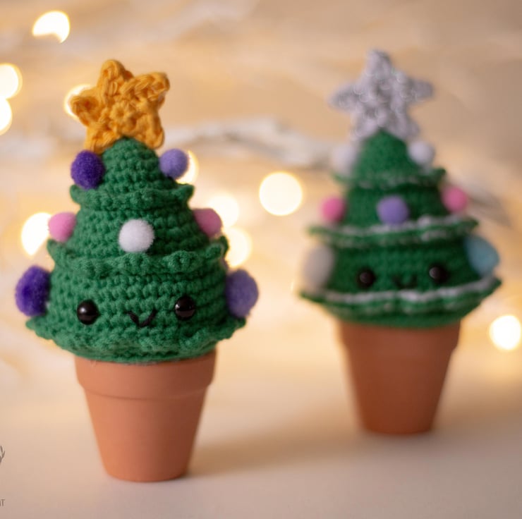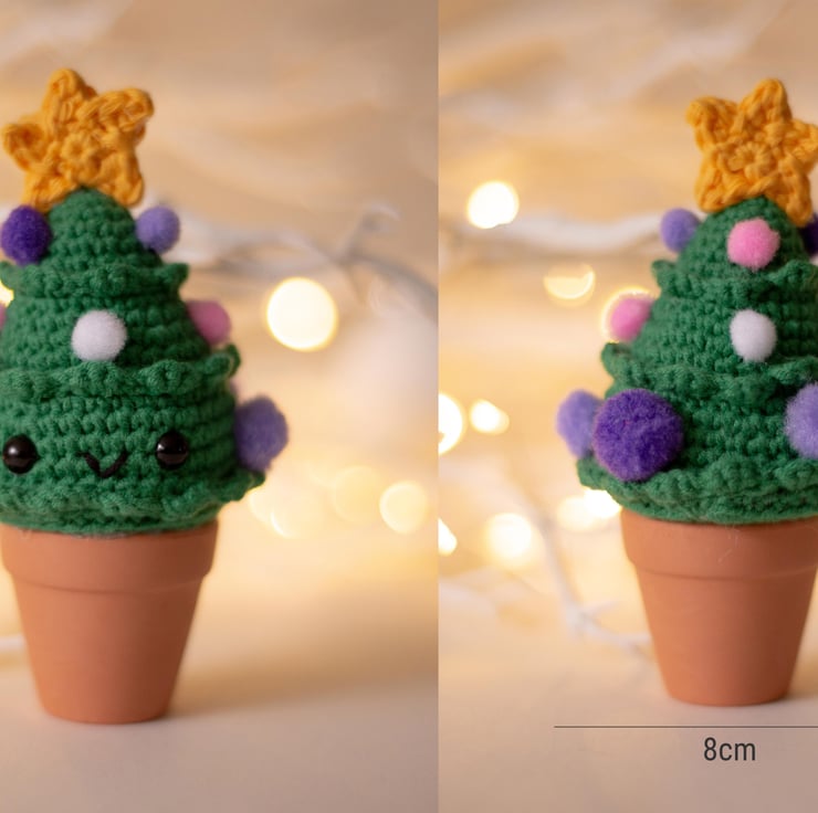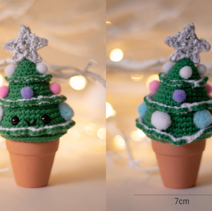 These small trees are crocheted from a soft yarn, decorated with colorful pom poms and glued to miniature terracotta pots. This small and joyful decoration is a nice addition to any shelf, desk or dining table during the festive season. Crochet Christmas tree will make a nice present, souvenir or a cute stocking filler! Make a present to yourself or your loved ones that will remind them about you for many holidays to come.