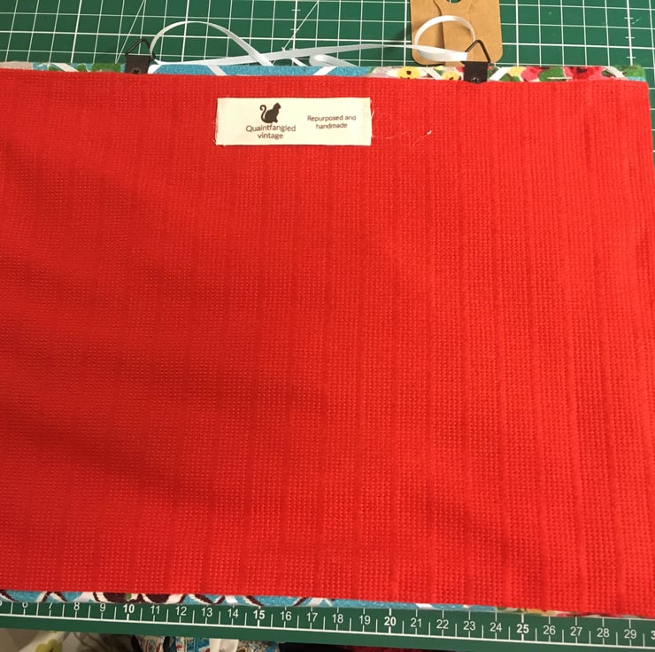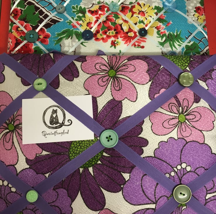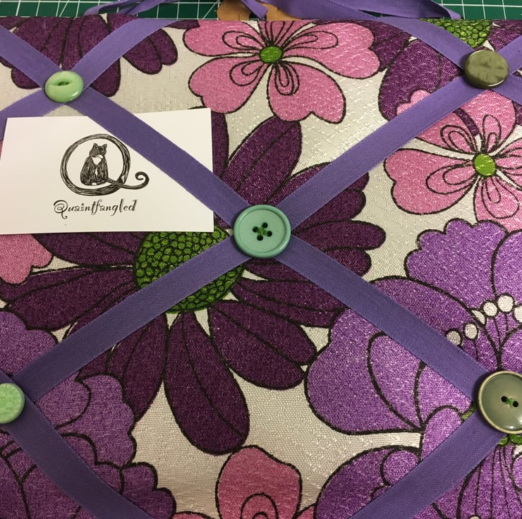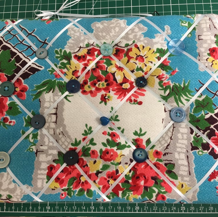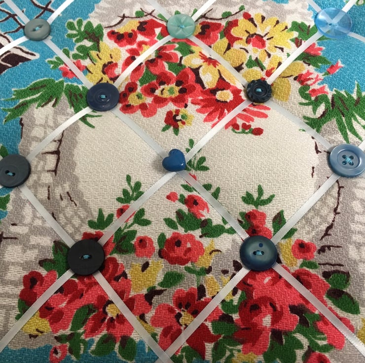 Made from vintage fabric, ribbon and buttons