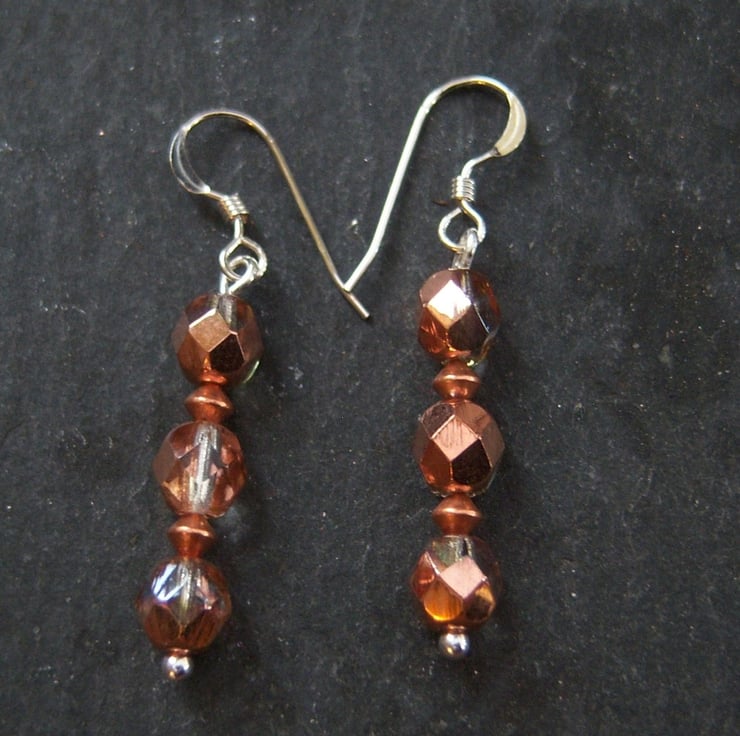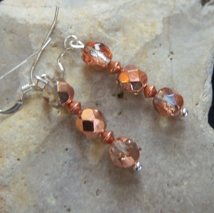 The earrings drop approximately 3cms and are interspaced with small bicone copper beads.