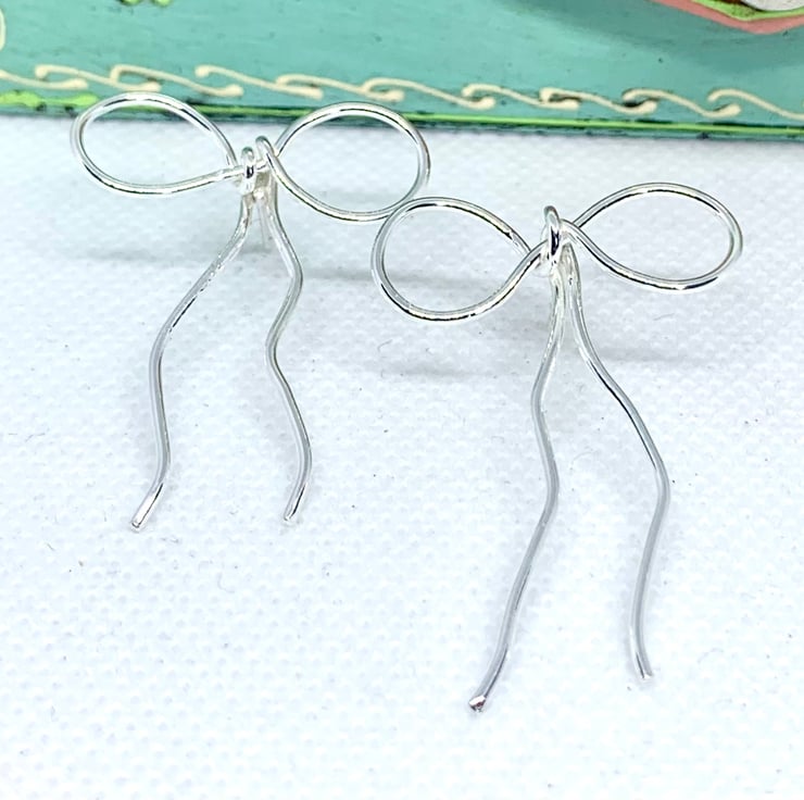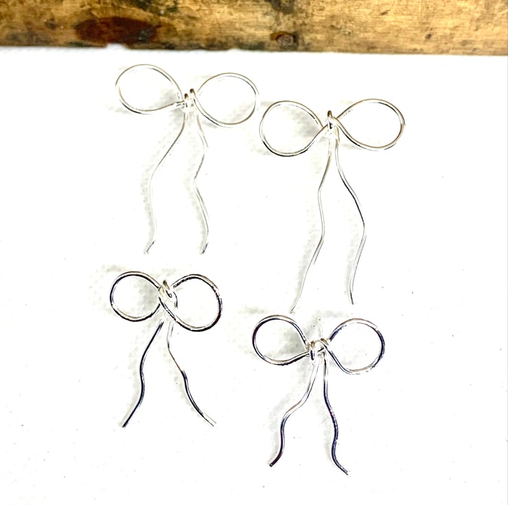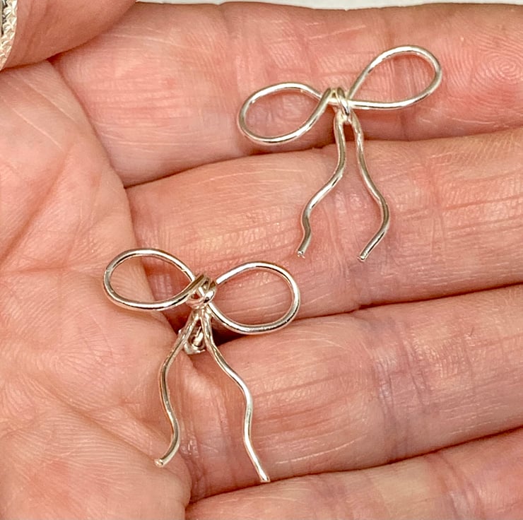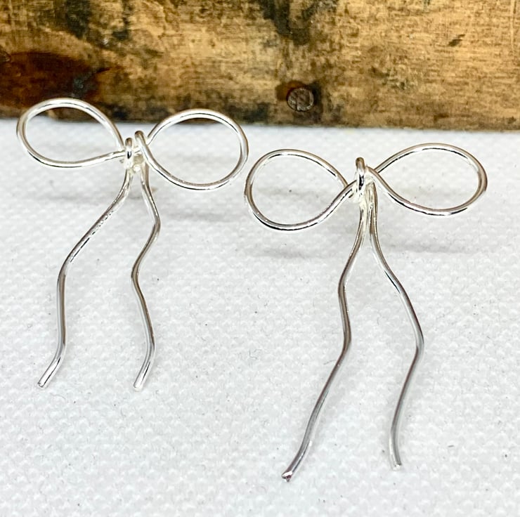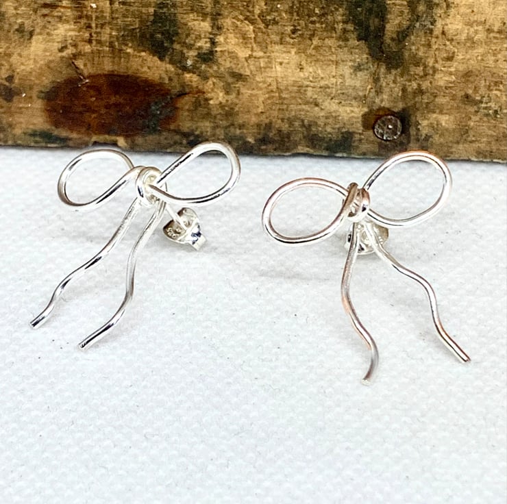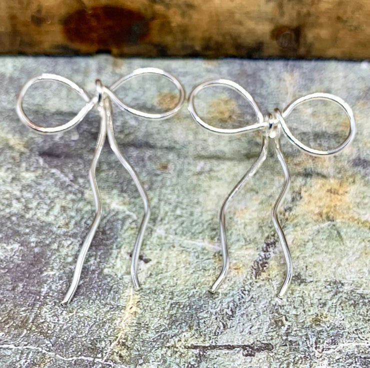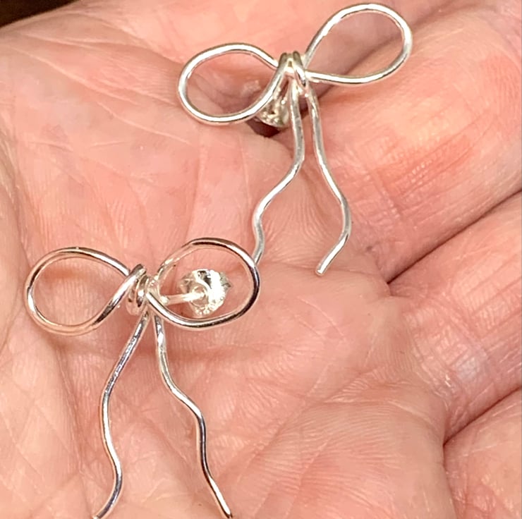 Made using traditional methods. They are made using a length of 1mm sterling silver wire, bending and shaping to make Bows. A post has then been soldered on to make them into stud earnings