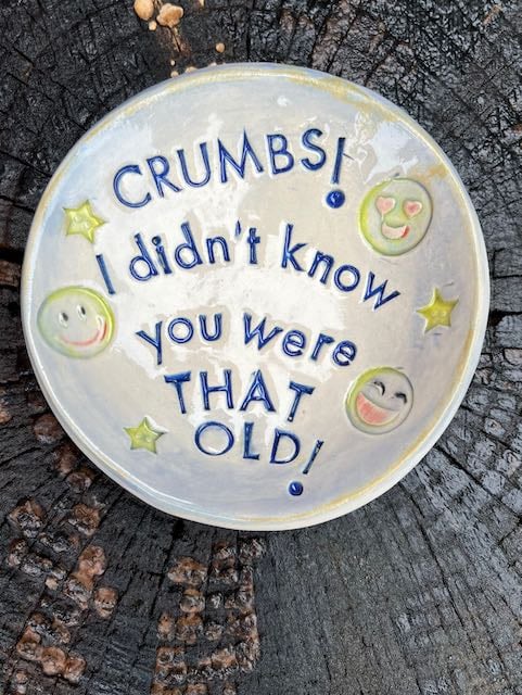 I love a touch of humour and a bit of a leg pull - I try to introduce it into my birthday cards - and also into my ceramics. I had the idea of a cake plate - a bit of a leg-pull for those significant birthdays! Big enough for a small slice - or an individual cake.