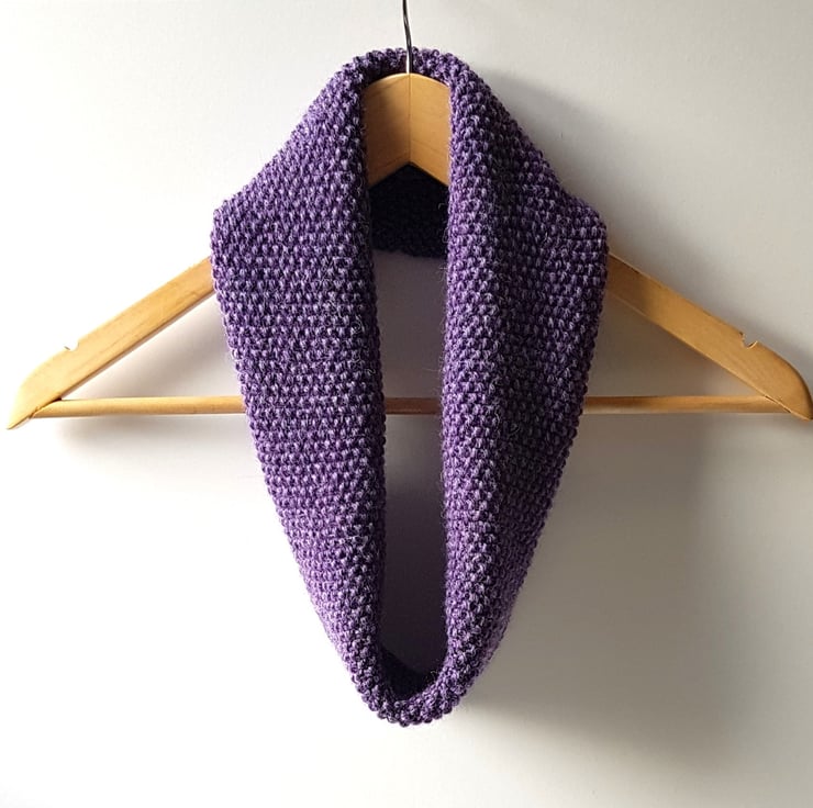 This heather pink colour single loop infinity scarf / cowl is hand knitted in a gorgeous and cosy super soft Alpaca wool which consists of 65% wool and 35% alpaca. It is great for keeping that autumn and winter chill off and great to wear indoors and outdoors. It’s also very handy as it can be rolled up and kept in your handbag or coat pocket ready for when you need it.