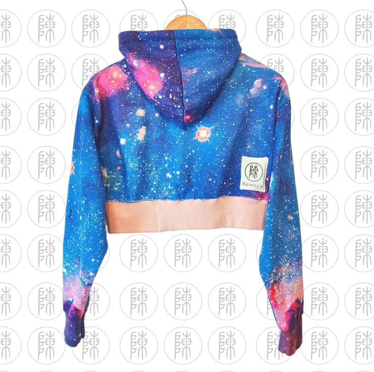 Incredible blue and purple galaxy DC Ora cropped hoodie with Washington DC spell out text. In good condition.