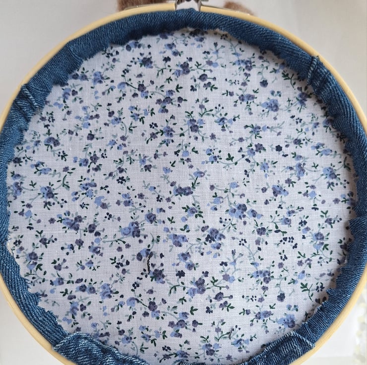 This piece measures approx 19cm across, and can be hung by the ribbon for display.