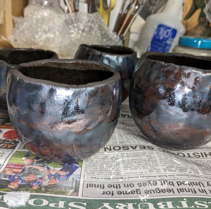 Dark metallic & hint of red handmade black clay small black clay stoneware pot approx 10cm x 10cm, perfect for small plants.