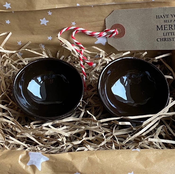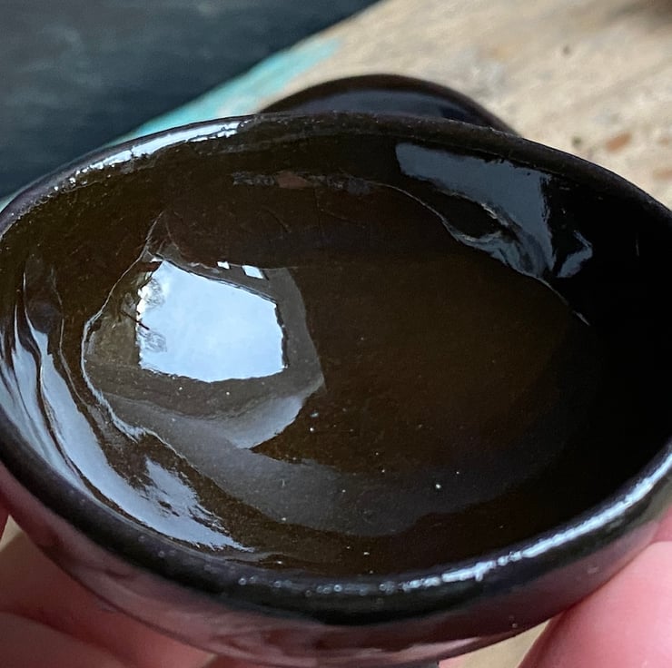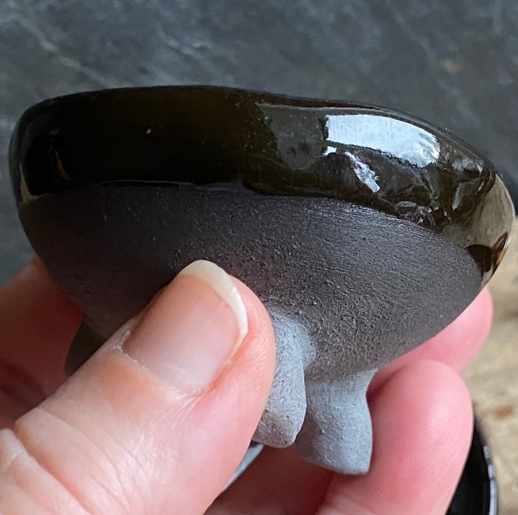 Each bowl features three charming stubby feet and is beautifully glazed in a rich chocolatey brown with an exposed underside!