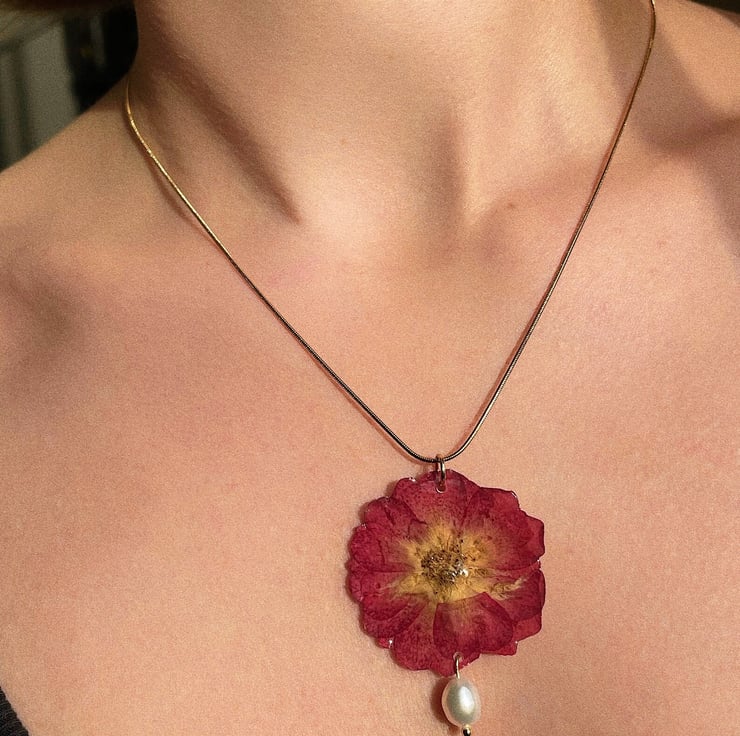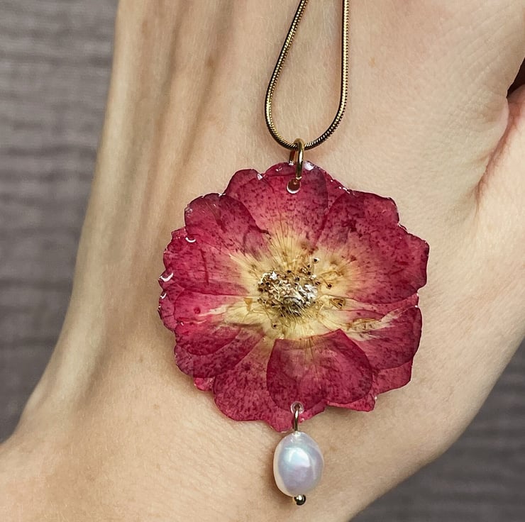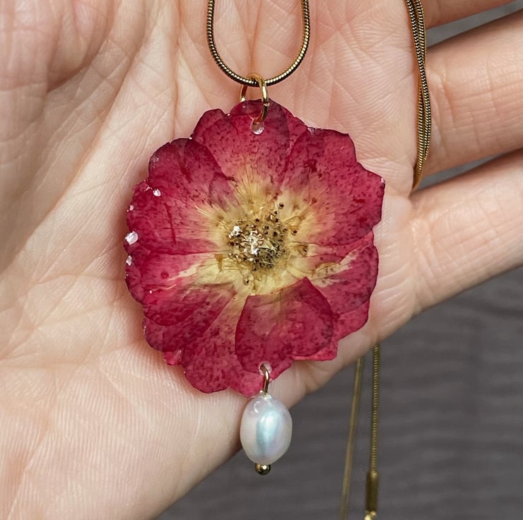 Stainless steel, dry rose and freshwater pearl.