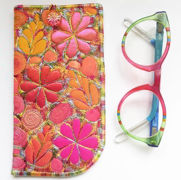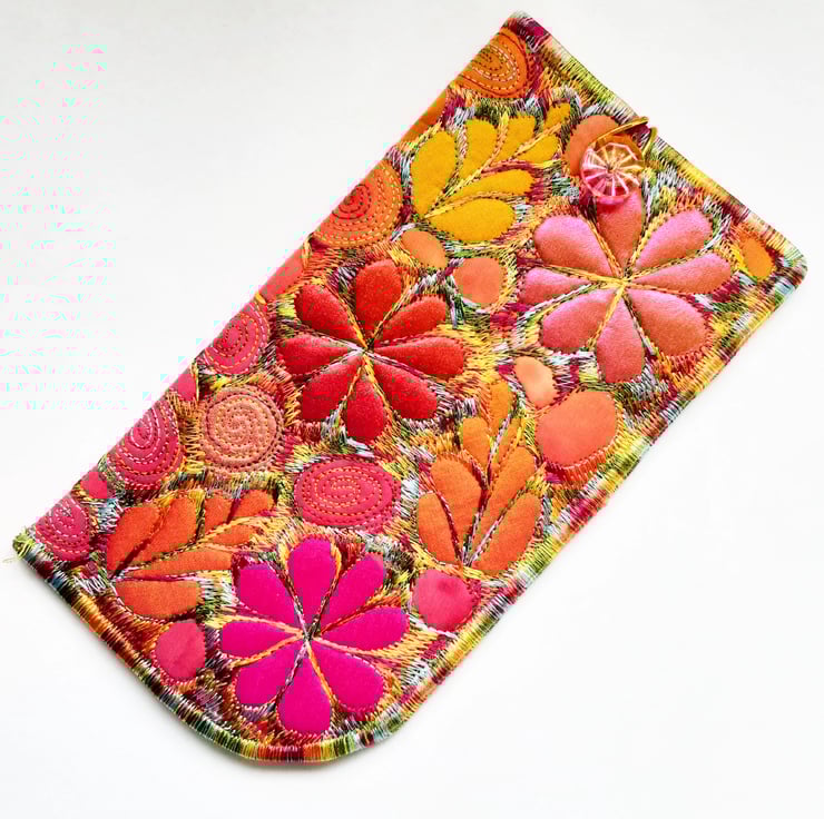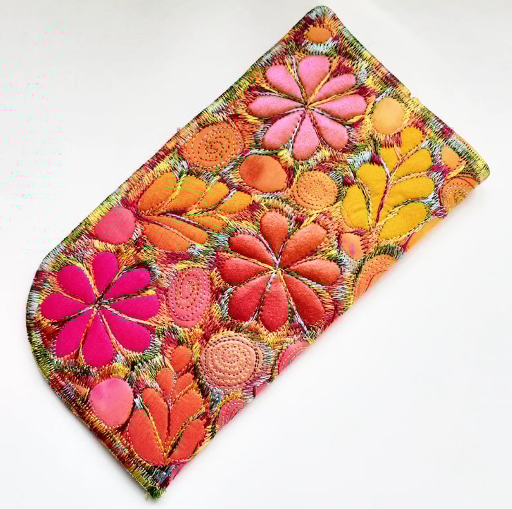 Made from layers of fabric including hand dyed Egyptian cotton an d silk fabrics using the free machine embroidery.