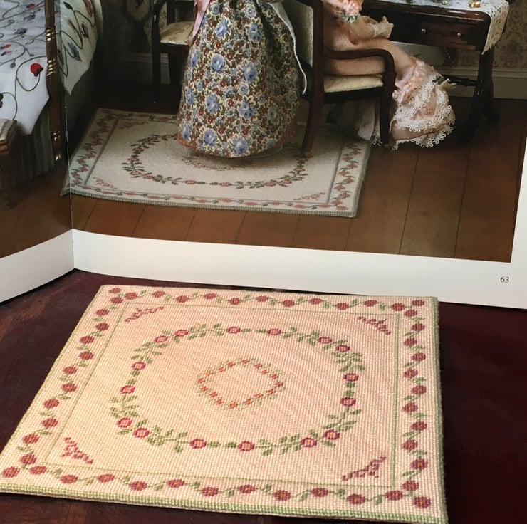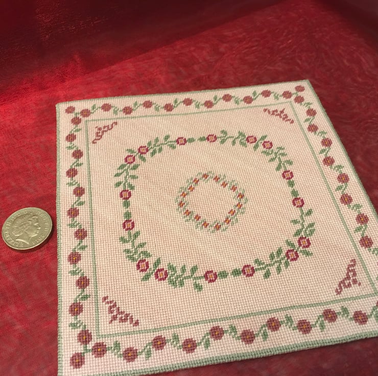 I used a design in the book Dolls’house Needlecrafts by Venus A. Dodge and I only made one of this design and several others and I’m offering you the chance to own this labour intensive example of hand stitching.