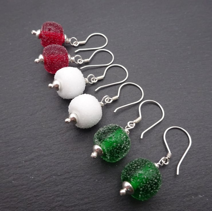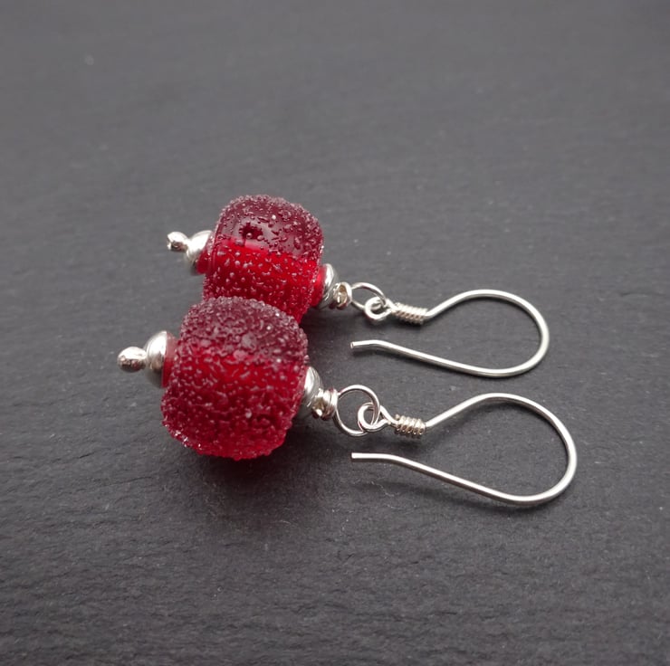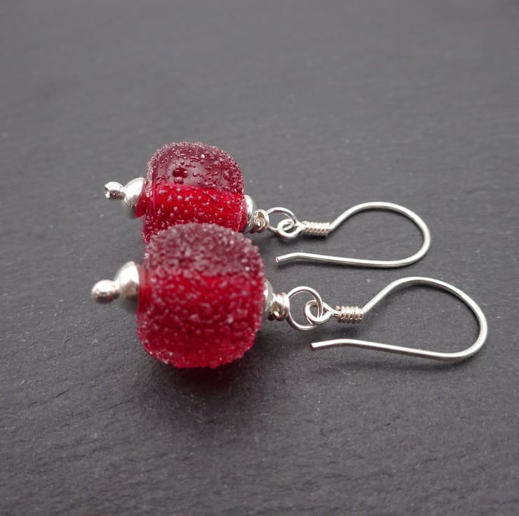 The lampwork beads have been handmade by me using red glass and rolled in clear glass to give a 'sugar' finish.