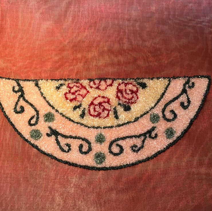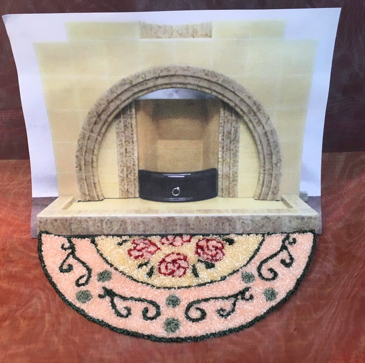 No.6. Semi-circular hearth mat. Peach, cream, green, roses 6” £4.00