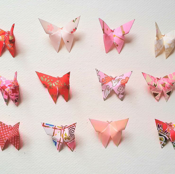 Each butterfly or crane is approximately 4cm by 4cm, personally handmade with beautiful texured yuzen paper.