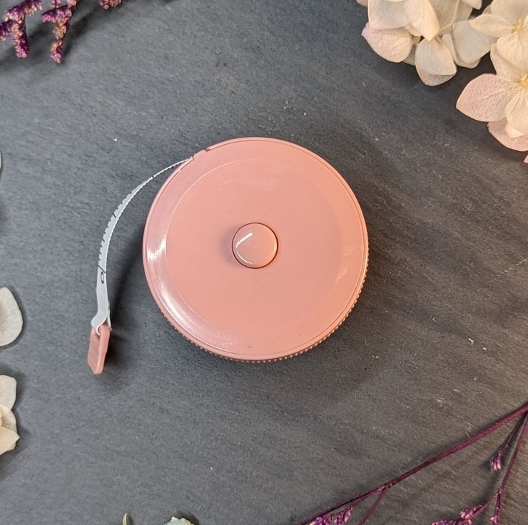 The measuring tape is 1.5 meters in length and has a button on the back to retract the tape. The embroidery style scissors have a glass gonk charm that can be removed and used as a key ring.