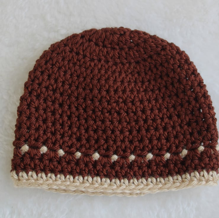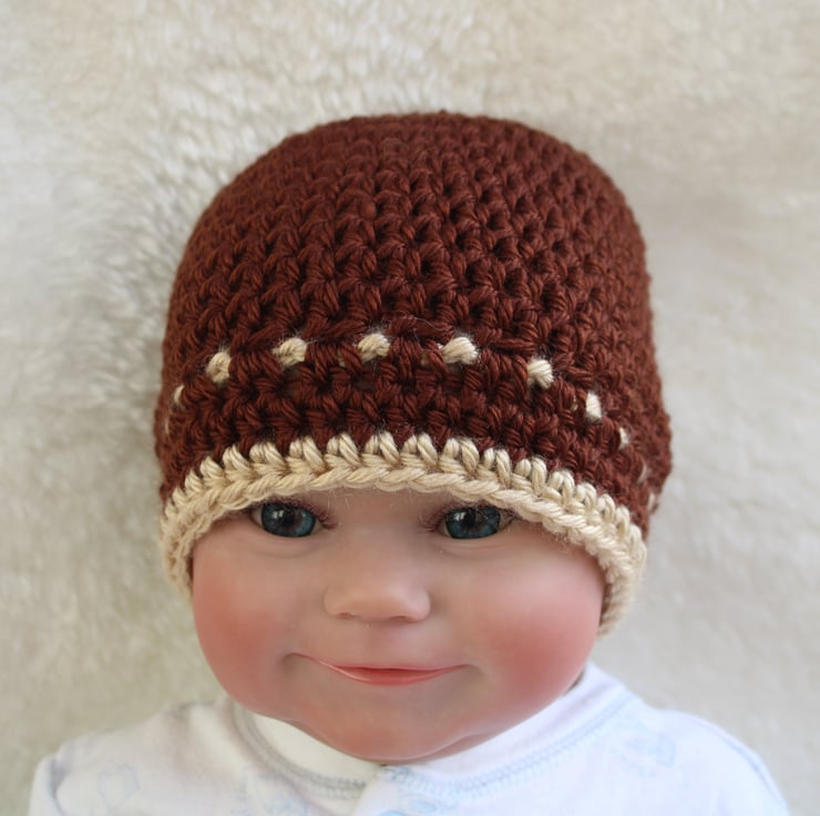 Chocolate brown in colour with a contrasting beige stitch and rib.