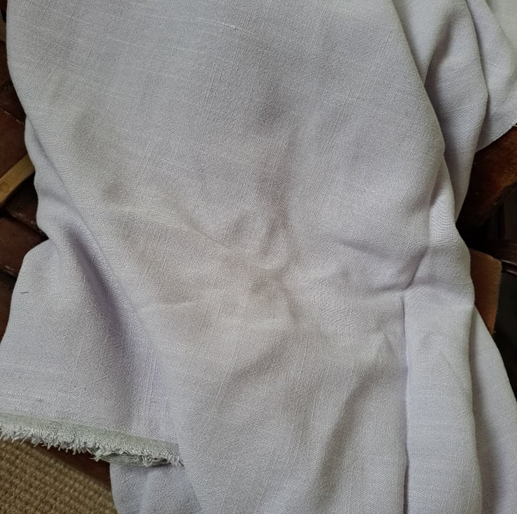 I've tried to capture the soft lilac colour in this piece of new and unused linen viscose dressmaking fabric - and failed. It's very soft in hue but a very true lilac. The fabric itself has the drape of viscose but the grain of linen and measures 1.4 metres (145cm wide). The perfect blouse, I'd say.