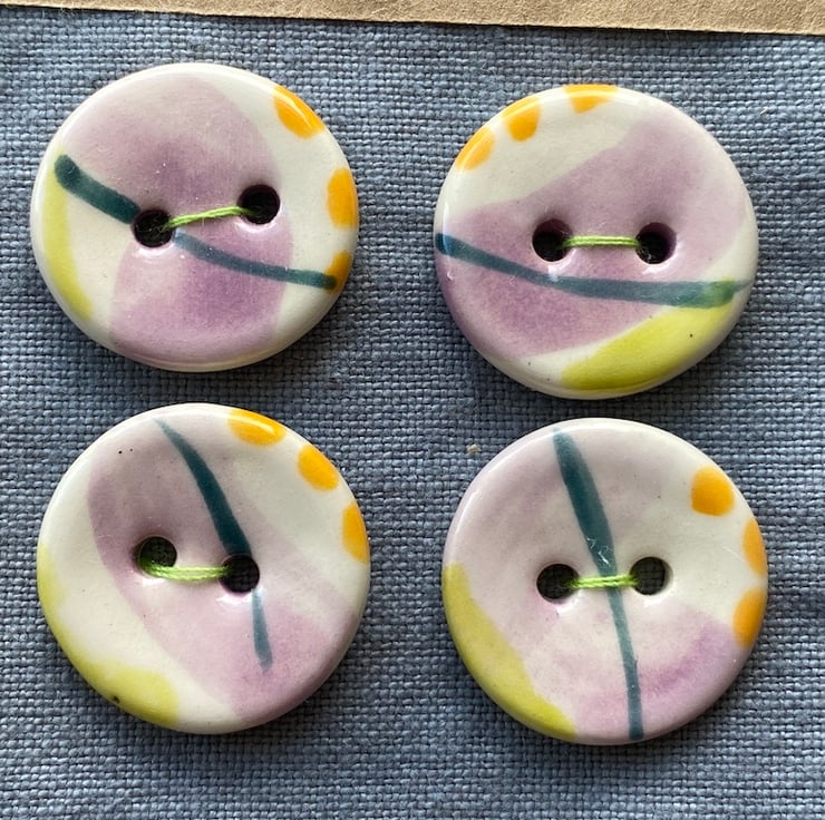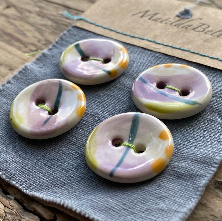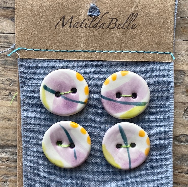 Set of Four Handmade Round 22mm Buttons, hand crafted from earthenware clay by me in my little pottery studio,