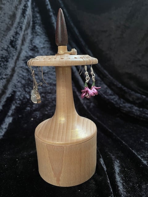 After watching my wife try to sort out her earrings! Its an interesting form to turn on the lathe and quite happy with feed back